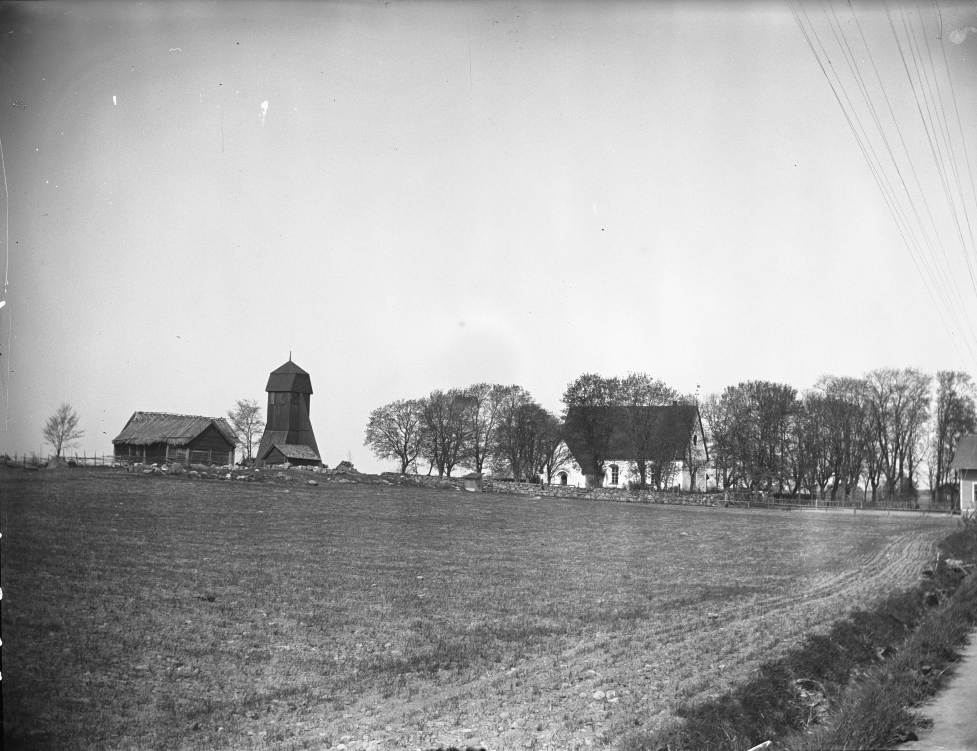 Kyrkan och dess omgivning mot söder, klockstapel.