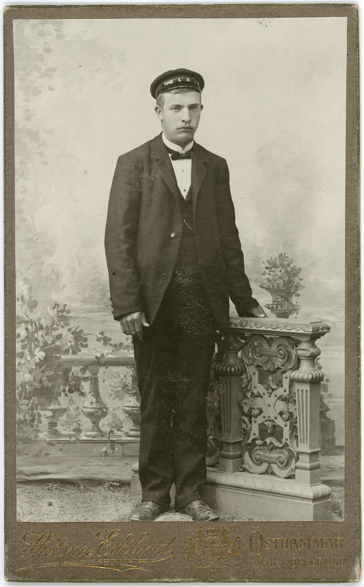 Kabinettsfotografi - ung man med skärmmössa, Östhammar