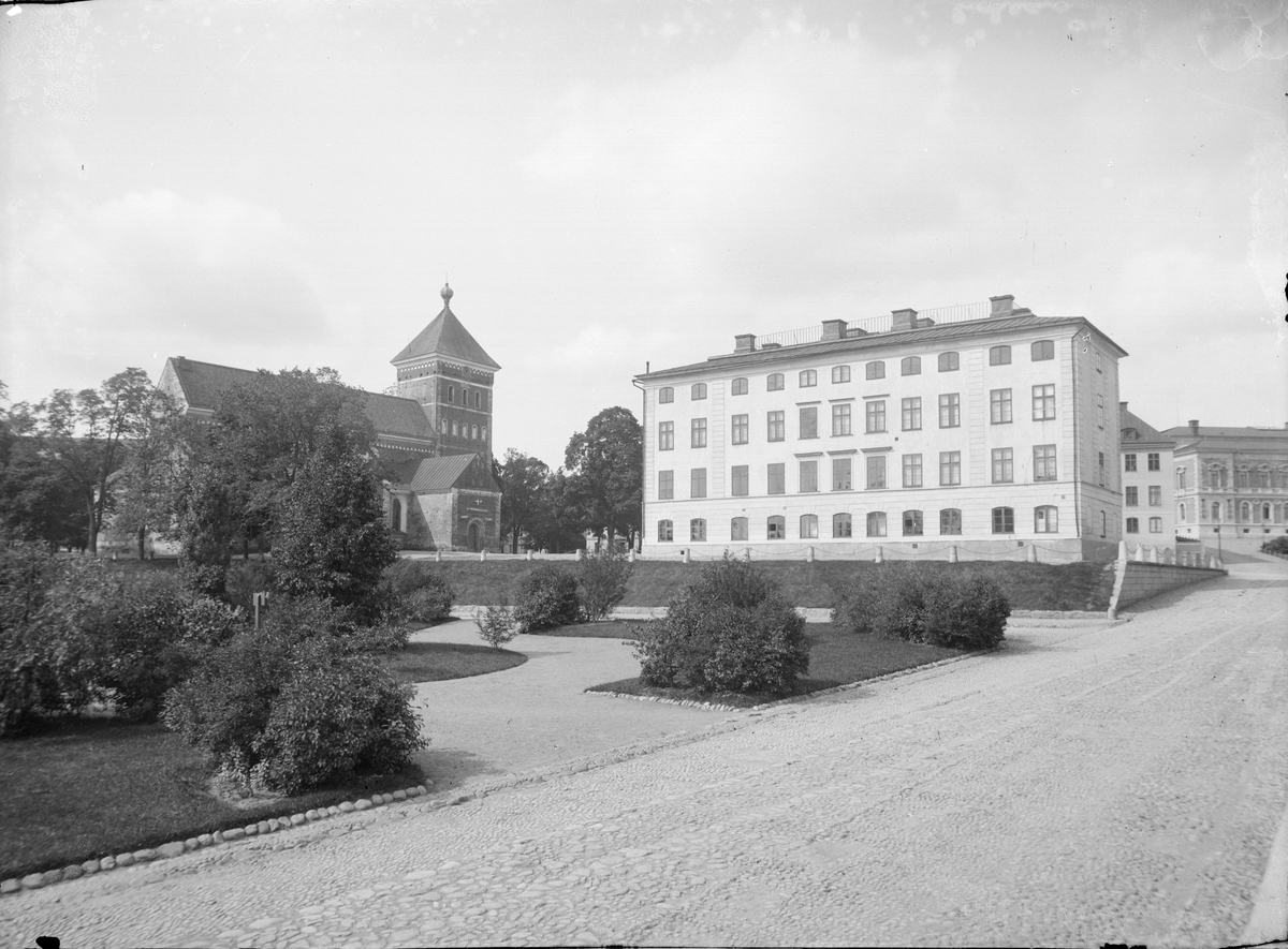 Folkskoleseminariet och Helga Trefaldighets kyrka från Riddartorget, Uppsala 1890