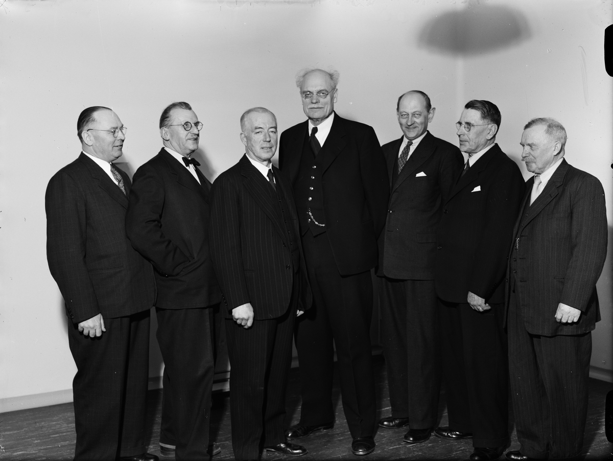 I mitten byggnadskommitténs ordförande, landstingsmannen och läkaren Axel "Lång-Pelle" Pettersson på Epidemisjukhuset