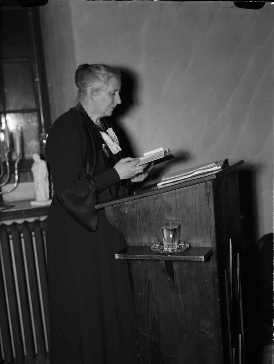 Siri Dahlquist håller hälsningsanförandet på "dagarna för samling och gemenskap" anordnade av Svenska Kvinnors Missionsförening i Samariterhemmets kapell