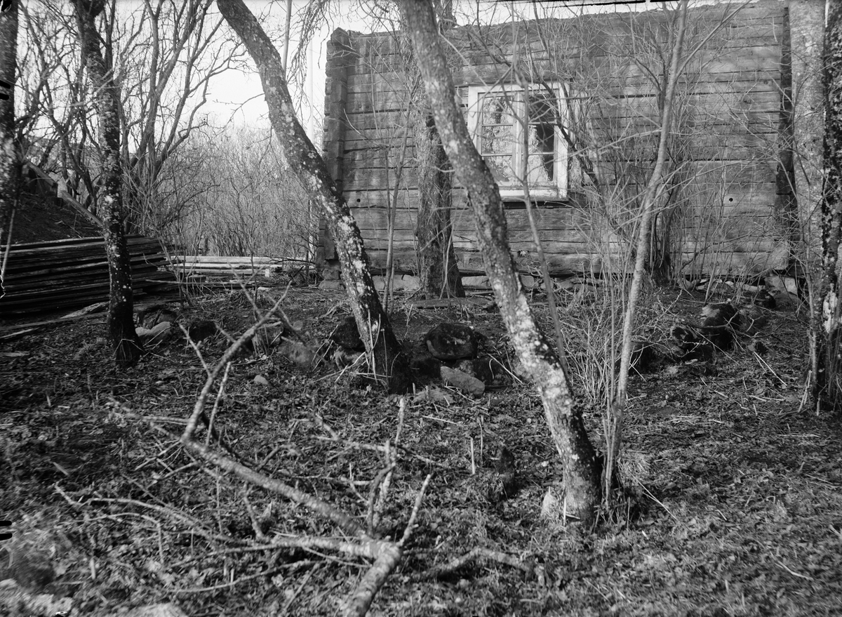 Bärbystugan, nu på friluftsmuseet Disagården, påbörjad nedmontering på ursprunglig plats i Bärby, Östervåla socken, Uppland