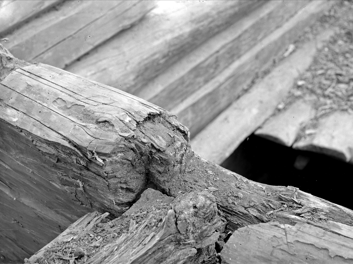 Hörnkonstruktion, portlider - nu på friluftsmuseet Disagården, på ursprunglig plats i Gränby, Björklinge socken, Uppland