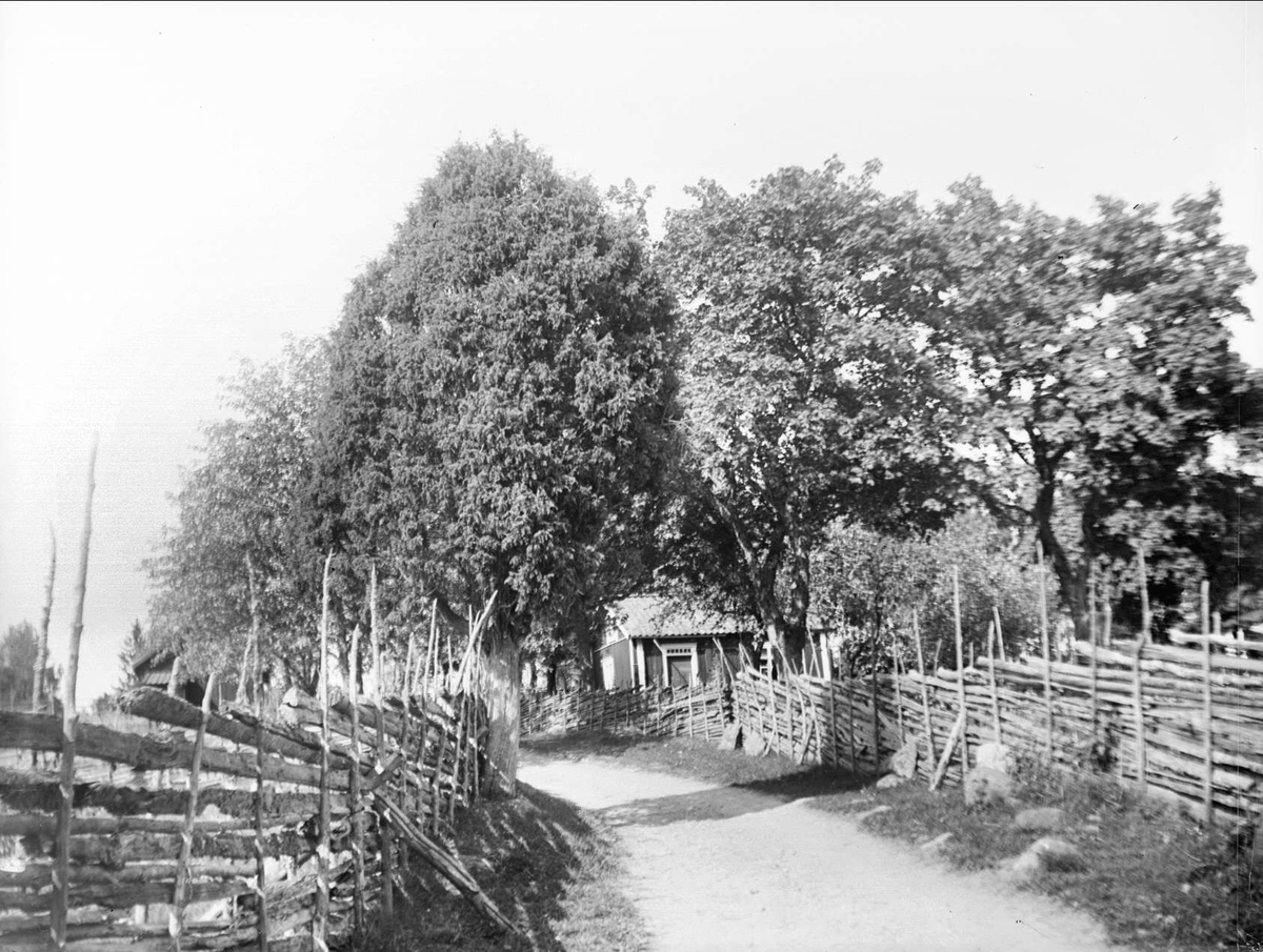 Väg med gärdesgård, vid Södersjön, Almunge socken, Uppland juni 1933