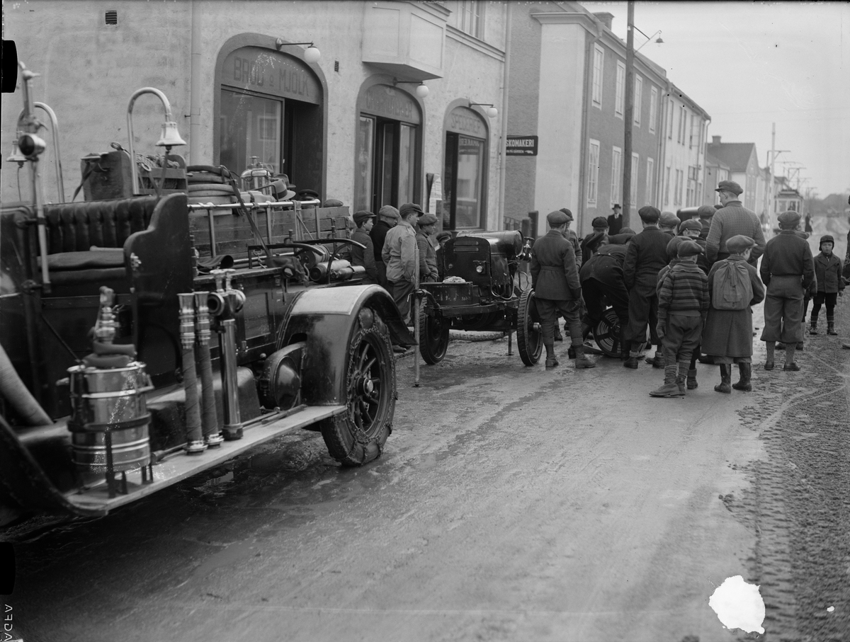 Folksamling i samband med översvämning på Gamla Uppsalagatan, Svartbäcken
