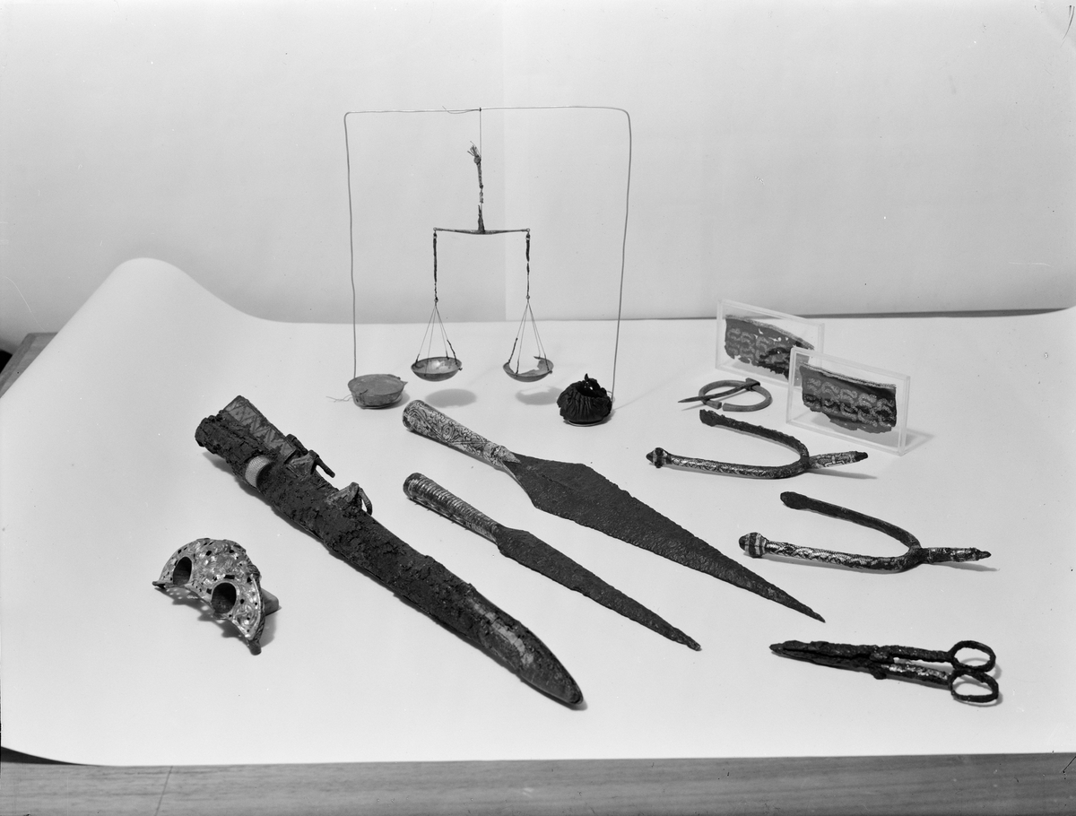 "Båtgravar i Valsgärde berättar om storbondesläkt i Fullerö" - fynd från Valsgärde gravfält på Museet för nordiska fornsaker, Uppsala 1948