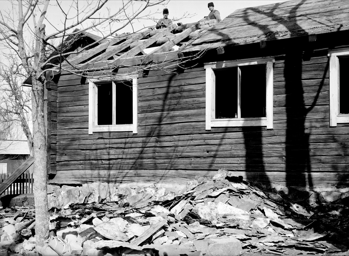 Helgdagsstugan - nu på friluftsmuseet Disagården - under nedmontering i Gränby, Björklinge socken, Uppland