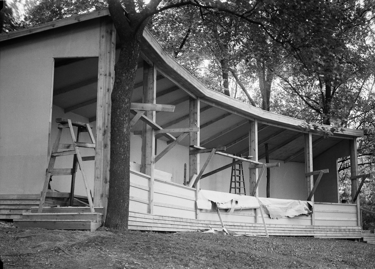 Upsala Fabriks- och handtverksförenings utställningspaviljong i Slottsbacken under byggnation