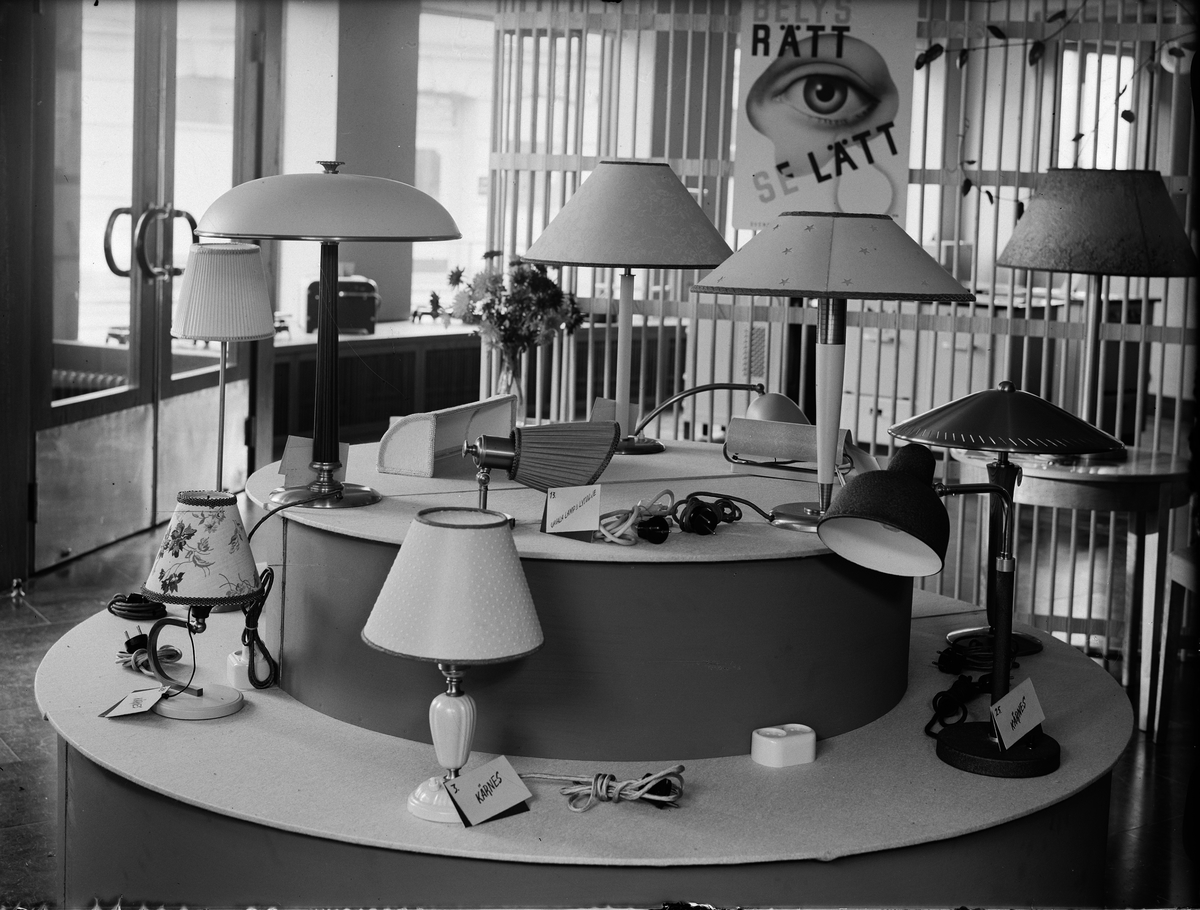 Lampor på utställning hos Uppsala stads gas- och elektricitetsverk, Kungsängsgtan 29