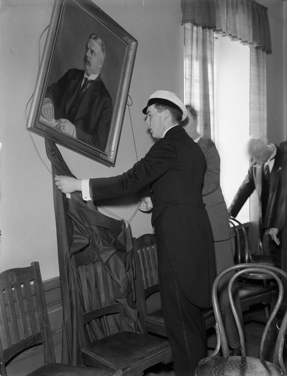 Porträtt av professor Wilhelm Sjögren avtäcks, Gotlands nation, Östra Ågatan 13