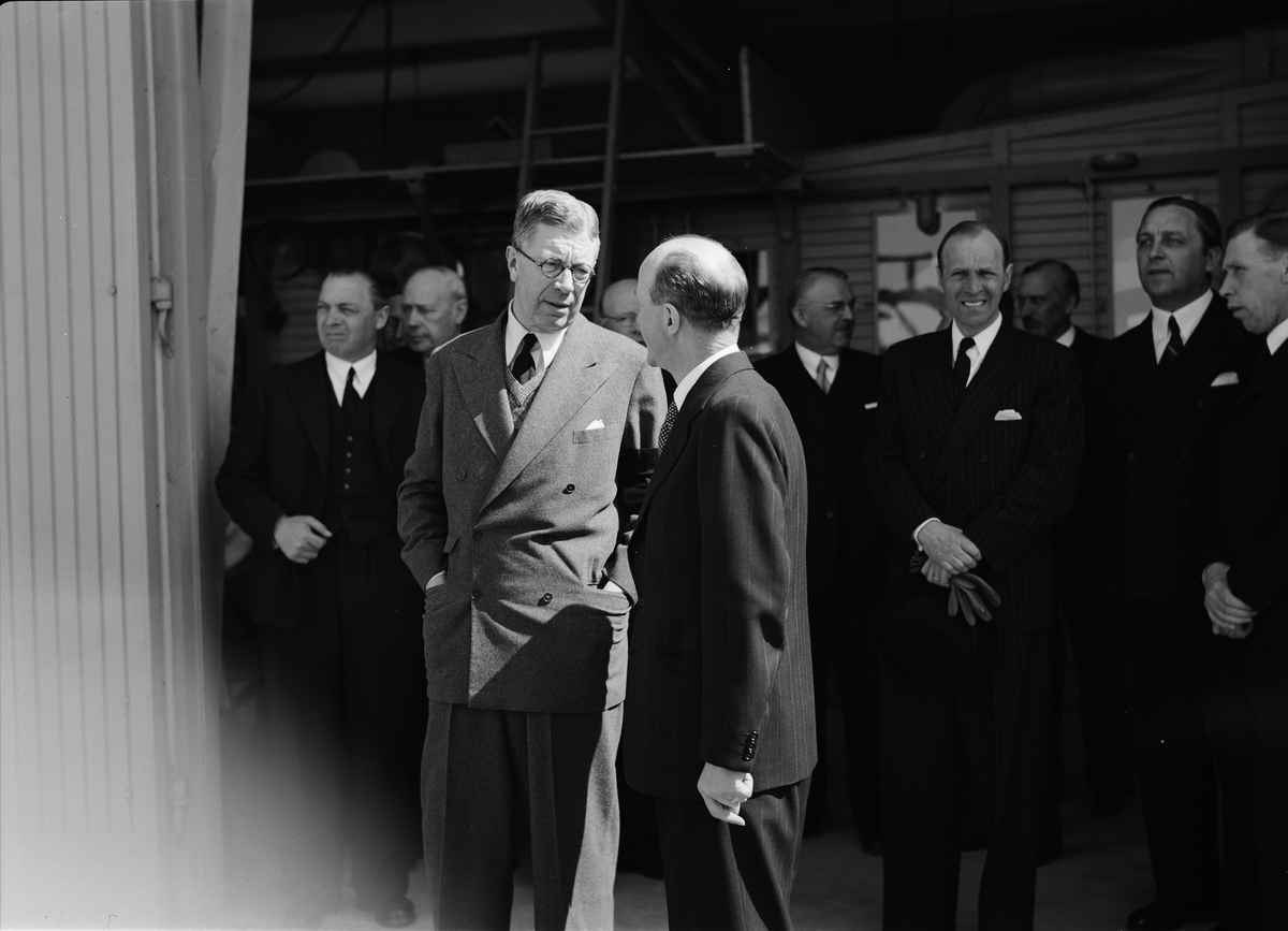 Titel: "Kronprinsen på heldagsbesök vid Lantbrukshögskolan. Tog intresserad del av de senaste vetenskapliga rönen inom modernäringen", Ultuna, Uppsala maj 1947