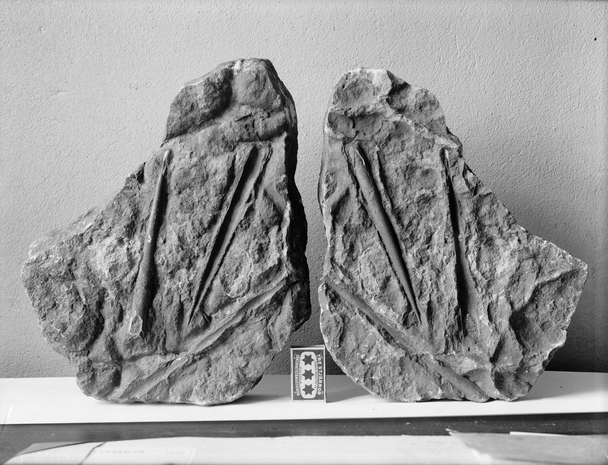 Sten med fossil, ortoceratiter, upphittad vid grävningsarbeten nära ålderdomshemmet i Norberga