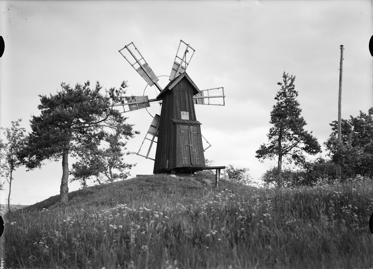 "Disagårdens senaste förvärv, väderkvarnen från Ramsta, står nu fullt färdig på kullen inom området"