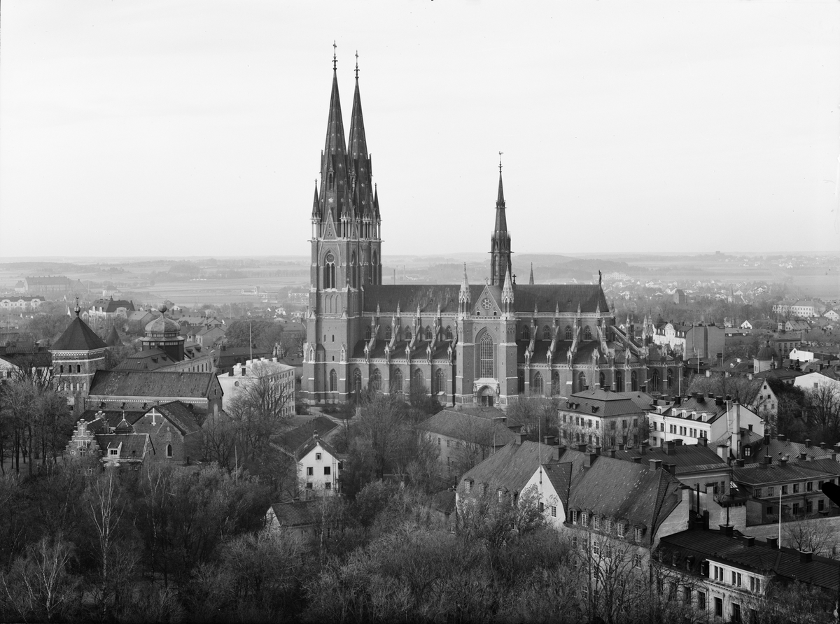 Stadsvy med Uppsala domkyrka och Helga Trefaldighets kyrka