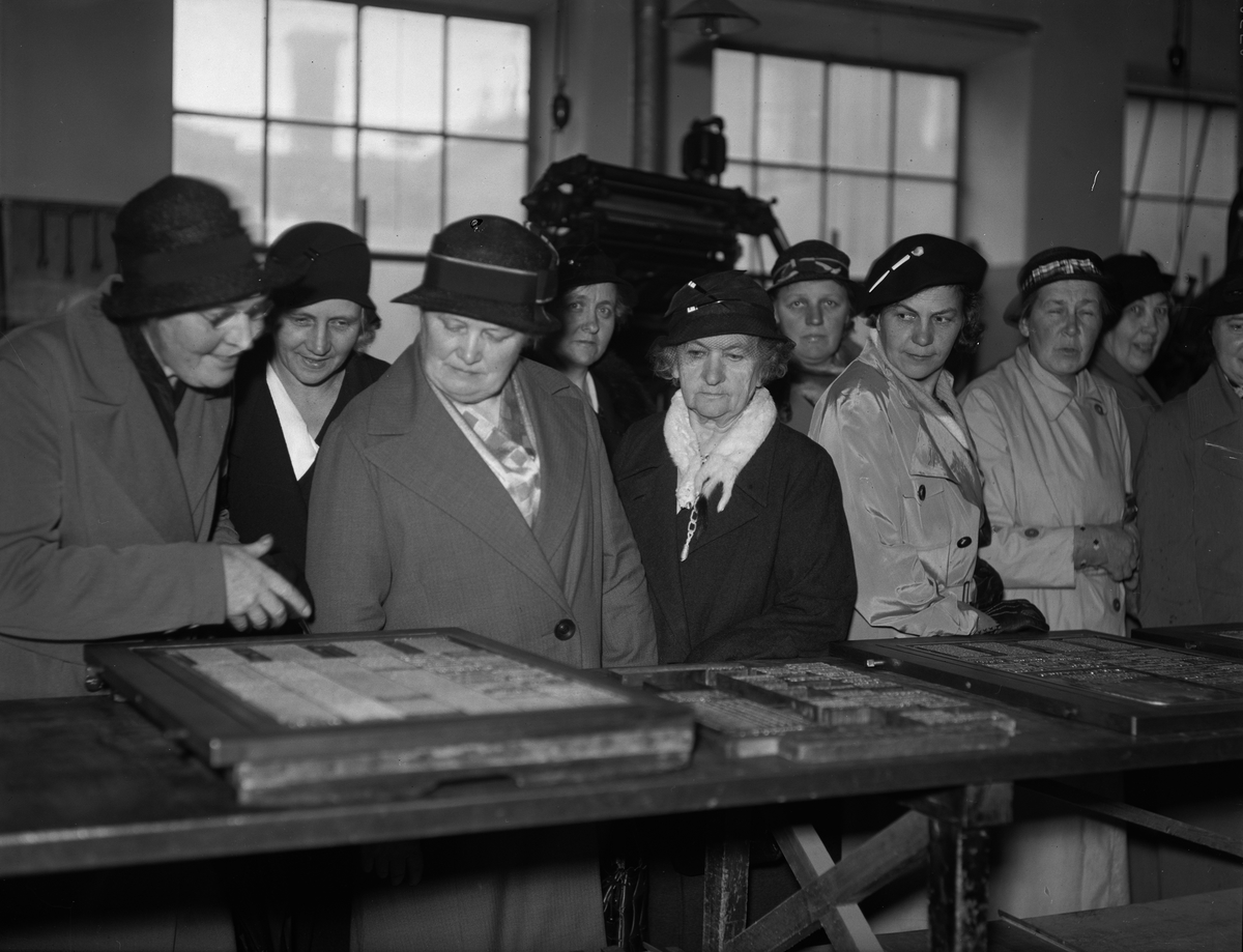 Uppsala Husmodersförening på studiebesök hos Upsala Nya Tidning, Gamla torget