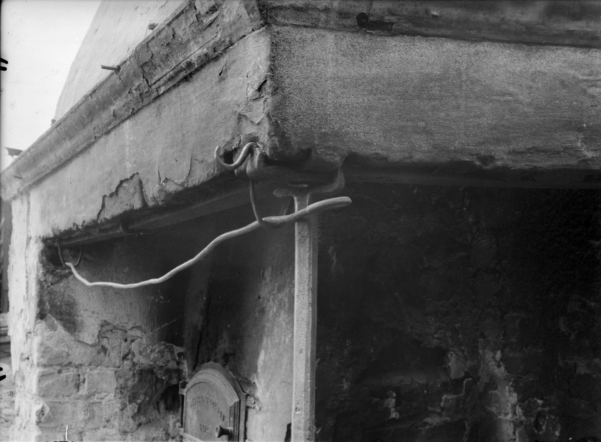 Detalj av köksspisen i Bärbystugan, nu på friluftsmuseet Disagården, på ursprunglig plats i Bärby, Östervåla socken, Uppland