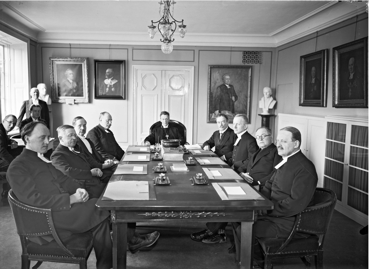 Sammanträde med ärkebiskop Erling Eidem, Uppsala