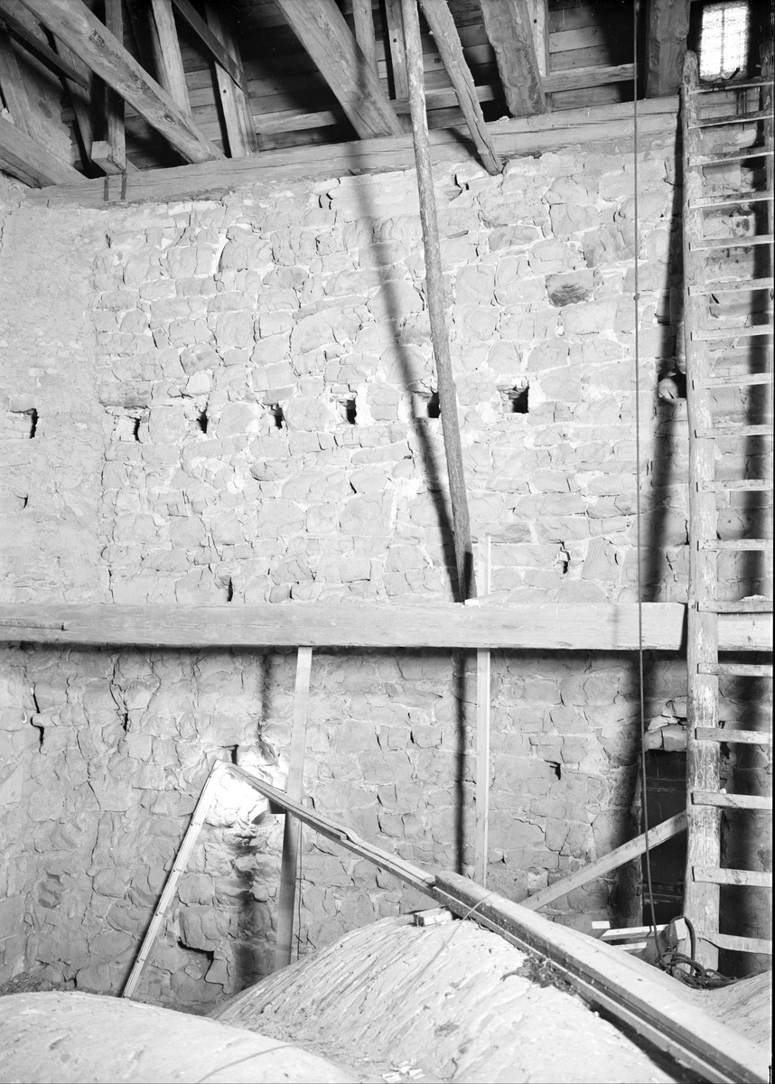 Murverk på vinden i Gamla Uppsala kyrka, Uppland 1950