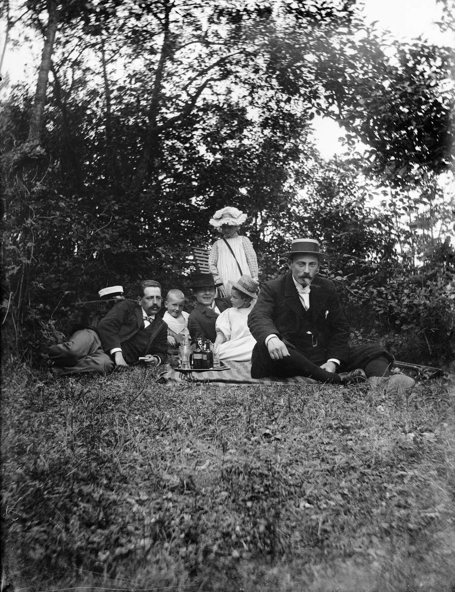 Einar Bergström, Olle Liljefors, Gusten Widerbäck, Carin Liljefors, Knut Stangenberg och Signe Liljefors, Berthåga, Uppsala 1901