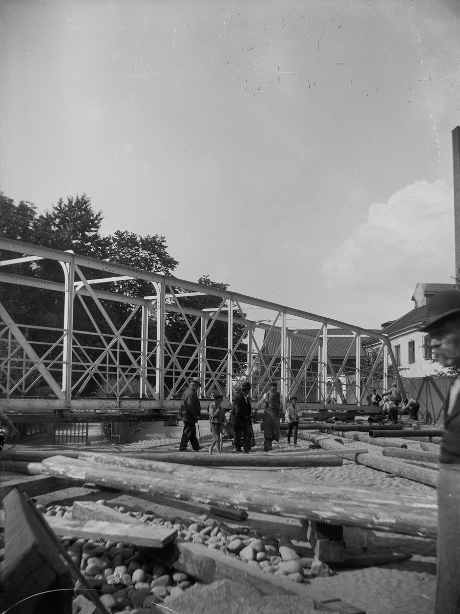 Bron vid Skolgatan under flyttning till Odensgatan, Uppsala 1901