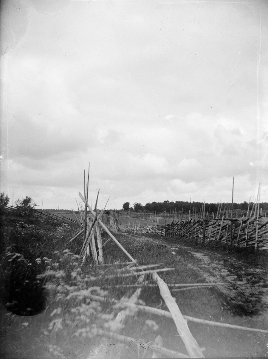 Landskapsvy med gärdesgårdar, sannolikt Uppland