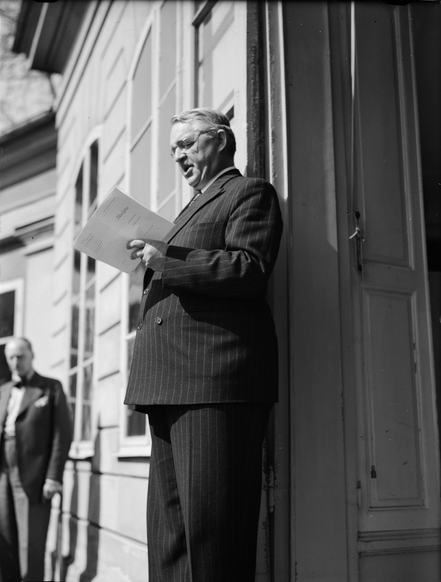 "1,500 besökare såg skulptur första dagen" - landshövding Hilding Kjellman inviger Upplands Konstförenings skulpturutställning i Linnéträdgården, Uppsala maj 1947