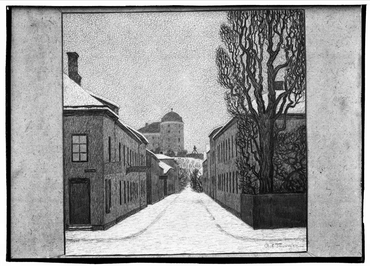Konstverk - grafiskt blad med motiv från Uppsala, signerat av konstnären Olof Thunman