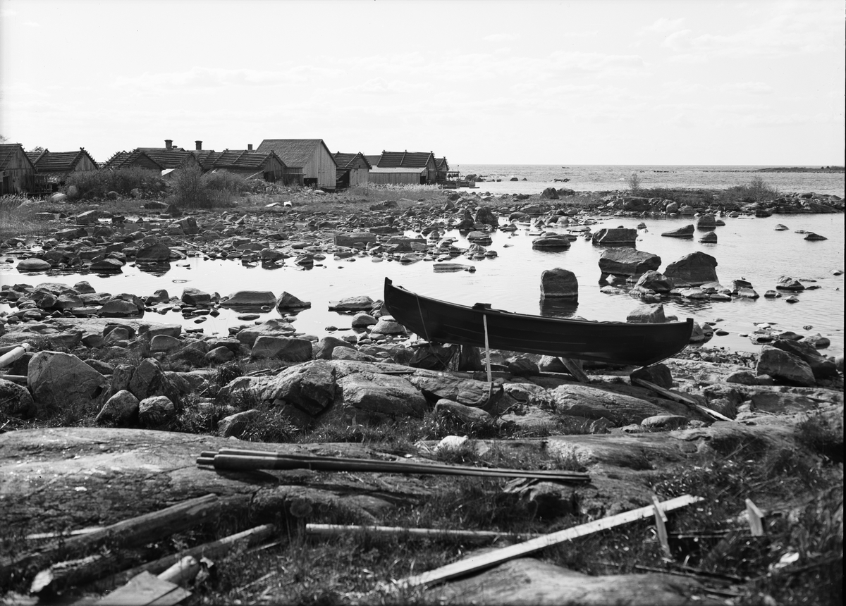 Strand vid Östersjön, sannolikt vid Haruddens fiskebodar, Älvkarleby