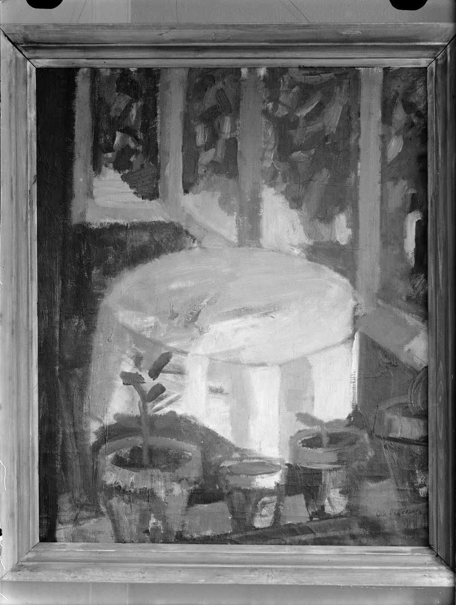 Oljemålning signerad Olle Petterson, på konstutställning med Göteborgskolorister anordnad av Upplands Konstförening, Östgöta nation, Trädgårdsgatan 15
