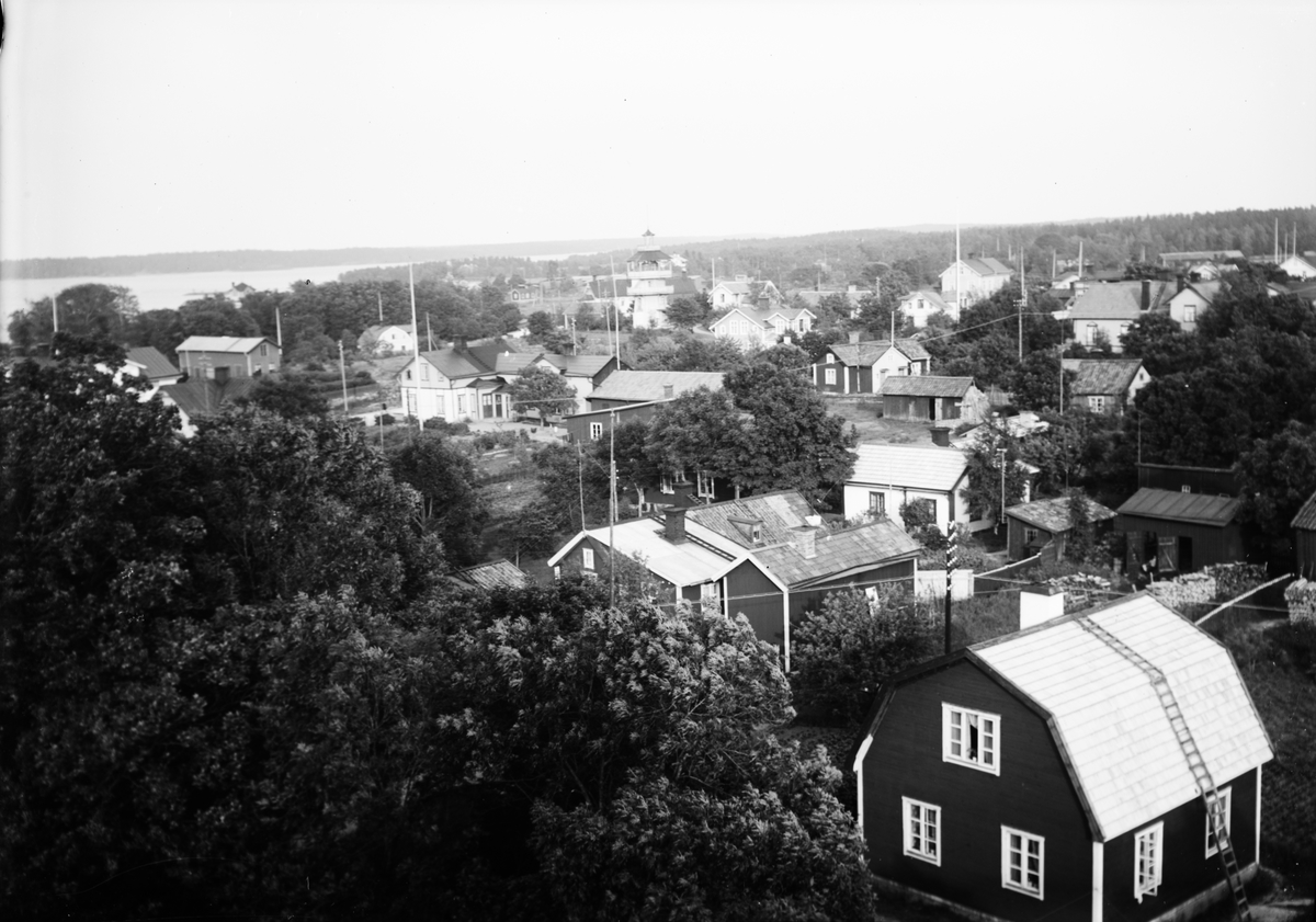 Vy från kyrktornet över Nya stadsdelen, Östhammar, Uppland