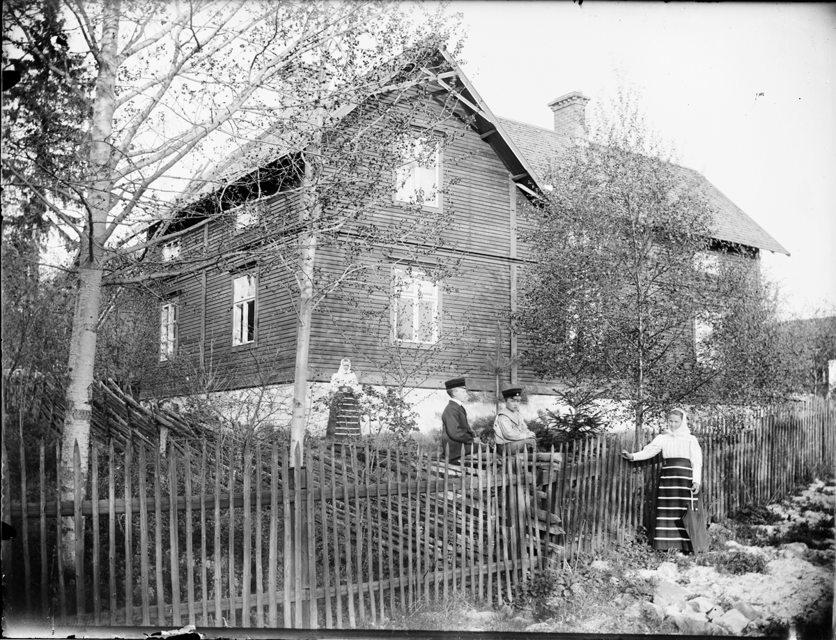 Kvinna och pojkar vid staket, Dalarna