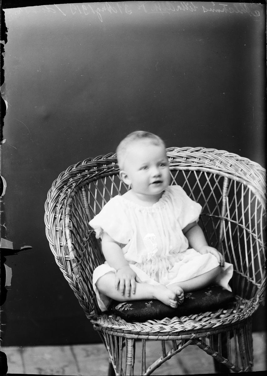 Ateljéporträtt - barn i korgstol, Östhammar, Uppland 1919