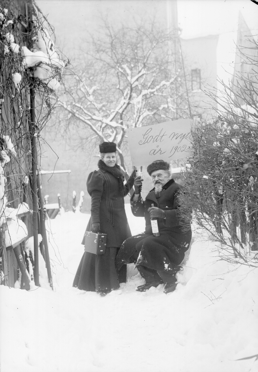 Emma och Henri Osti med nyårshälsning, Uppsala 1902