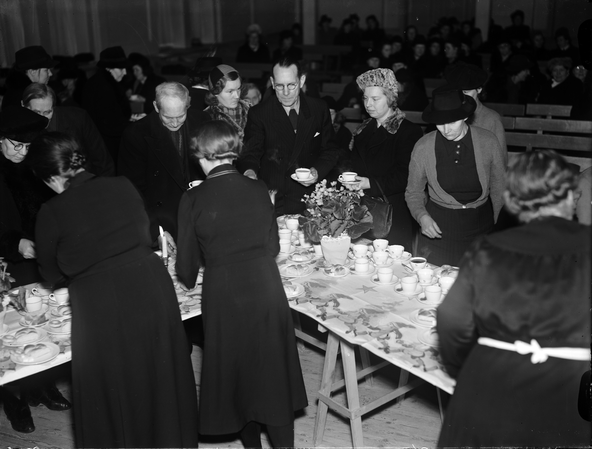 "Livligt kring kaffeborden" på Frälsningsarméns traditionella julfest för "behövande och gamla", S:t Persgatan 20