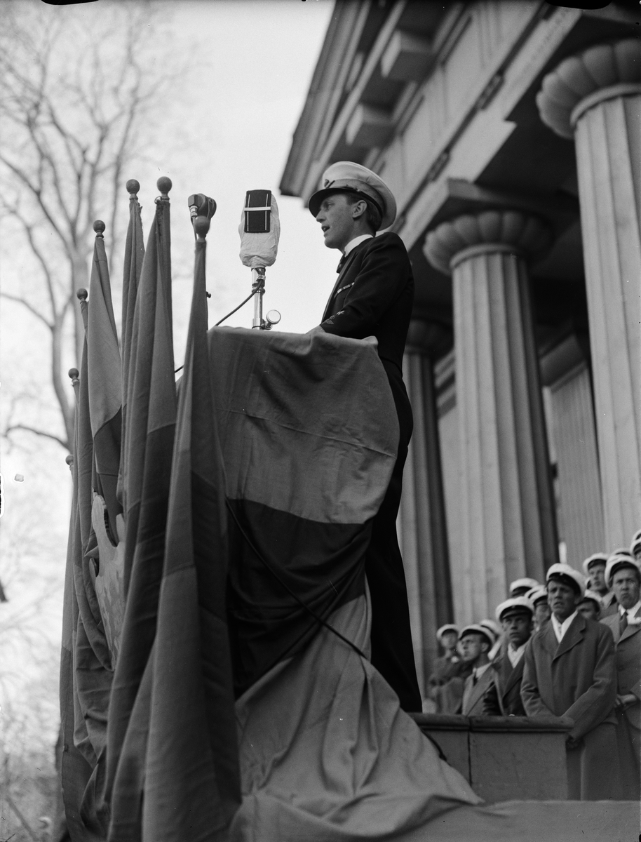 "Vårfesten i Upsala nordiskt betonad. Manande högtidstal av flyggeneral Nordenskiöld" - Botaniska trädgården, Uppsala 1942