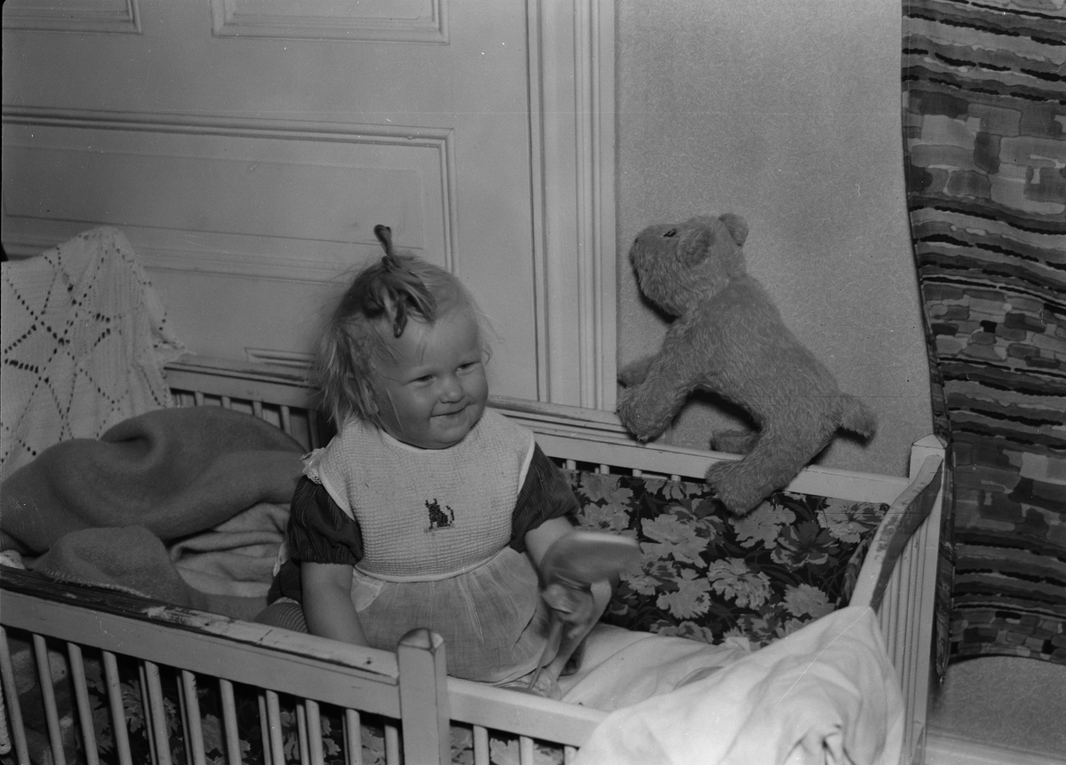 Finskt flyktingbarn leker strax innan återfärden till Finland, mottagningshemmet i Uppsala