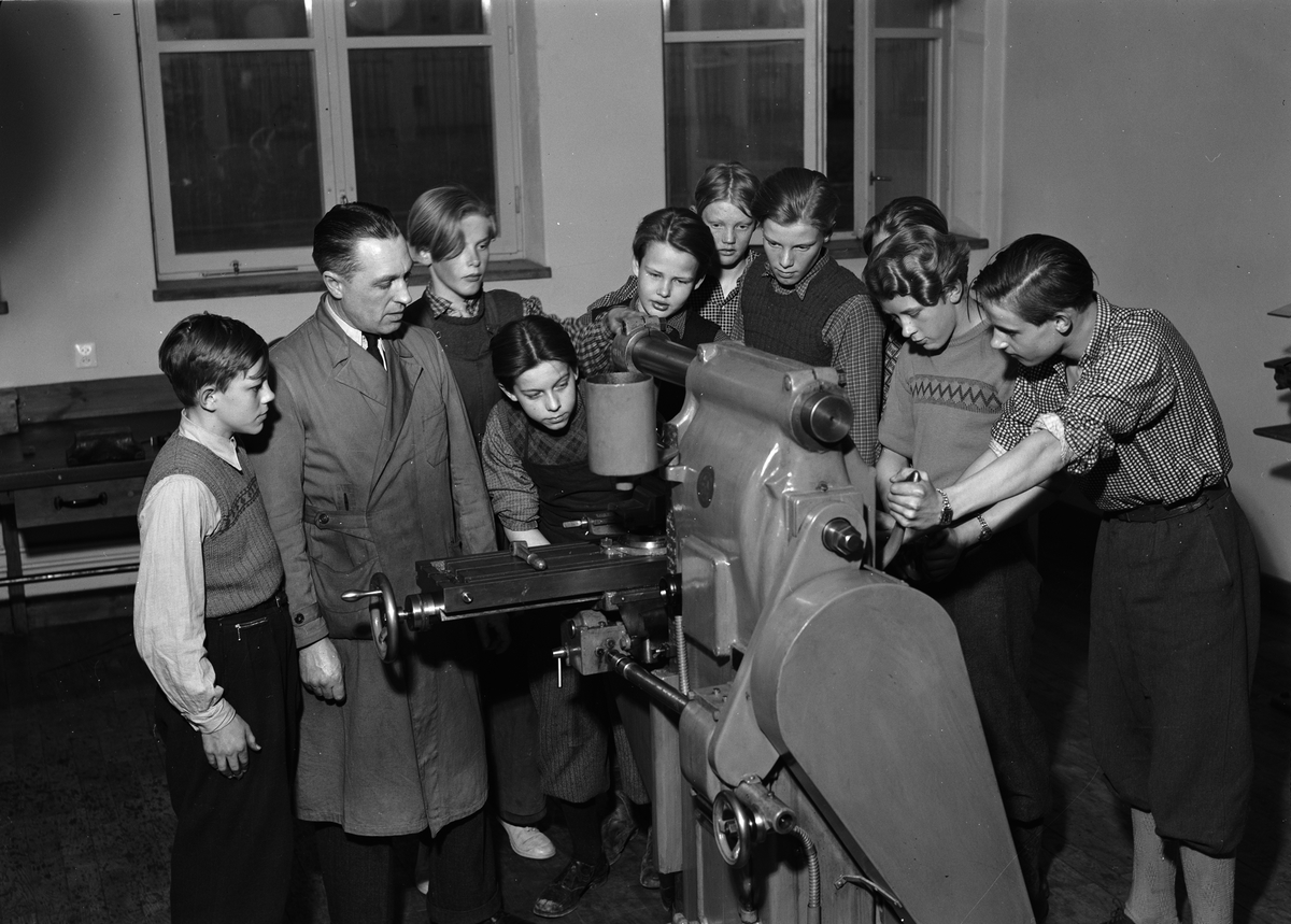 Ämnesläraren verkmästare Harry Söderberg undervisar elever vid kipphyveln