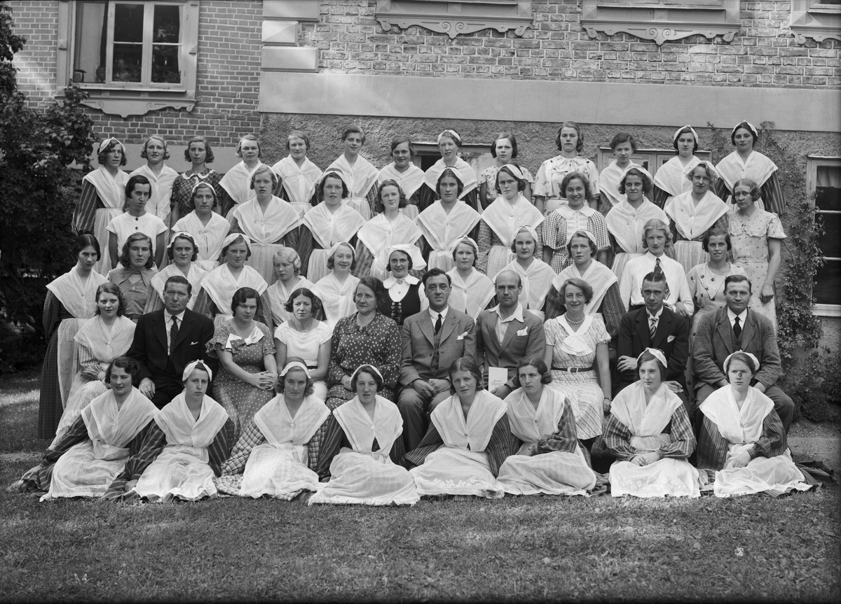 Grupporträtt - elever och lärare vid Wiks folkhögskola, Balingsta socken, Uppland 1935