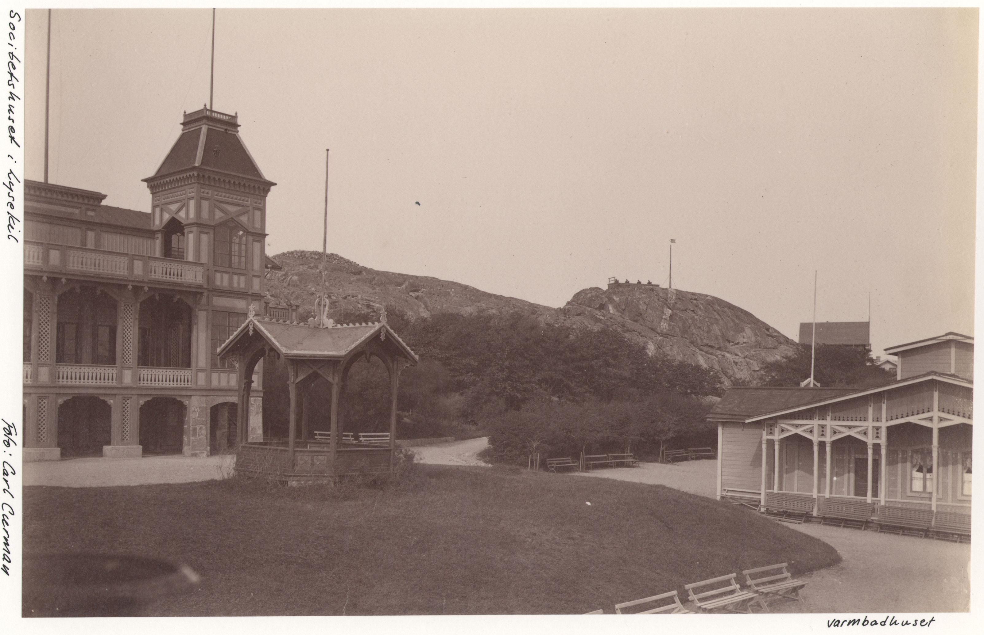 Uppfört 1882. Musikpaviljong. Varmbadhuset till höger i bilden. Salutbatteri uppe på kullen till höger, och taket till Bergshyddan.