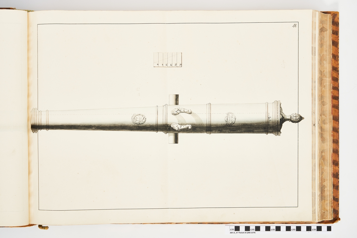 Titel: Avbildning föreställande romersk kejserlig trofé med kejsar Ferdinand III:s vapen. Ingår i volym med avbildade äldre svenska eldrör förvarade på fästningar samt eldrör erövrade åren 1598-1679.