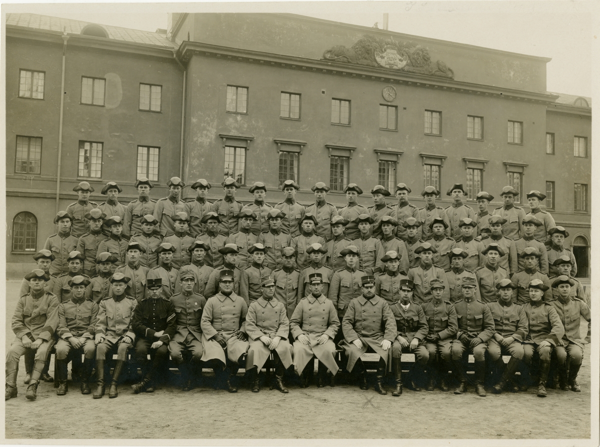 Grupporträtt av officerare och soldater vid Positionsartilleriregementet A 9, 1927.