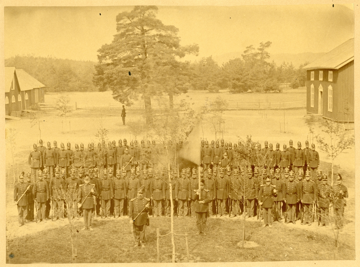 Titel: Grupporträtt av okänd kompani vid Hälsinge regemente I 14.