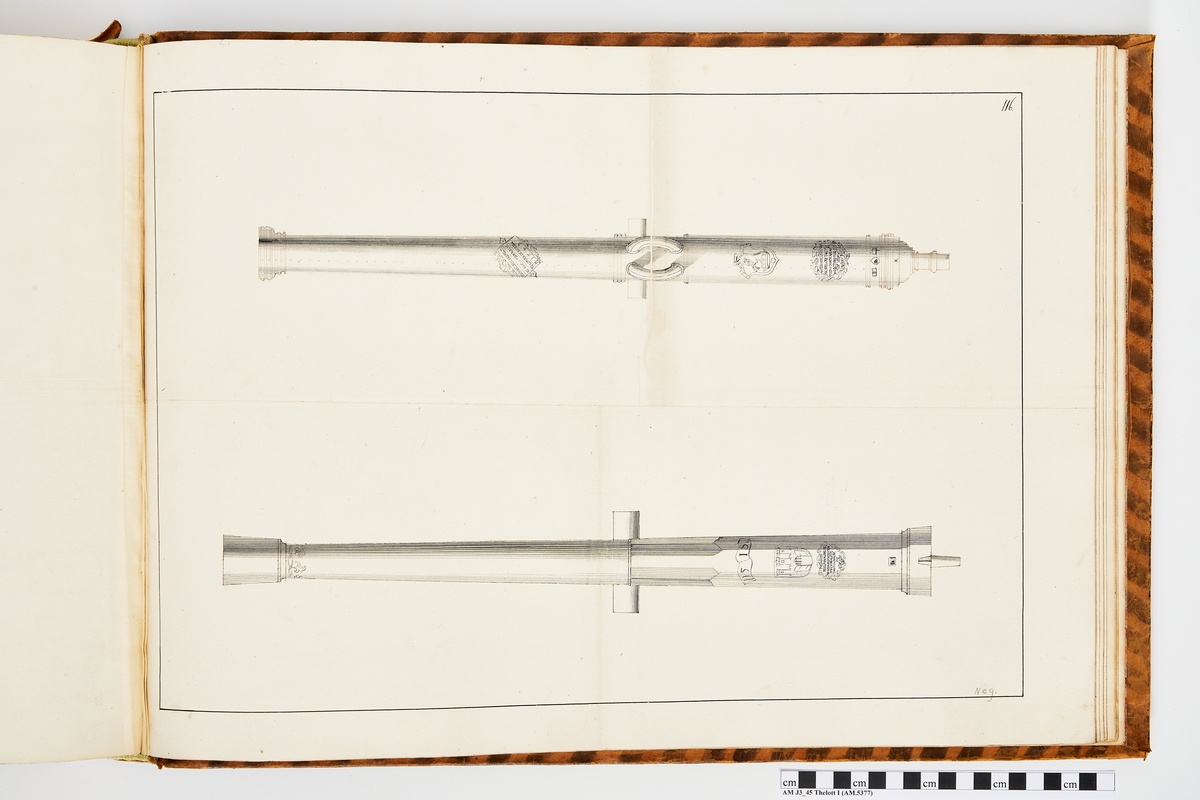 Avbildning föreställande eldrör tagna som troféer av den svenska armén i Kraków den 2 oktober 1702. Ingår i volym med avbildade kanontroféer tagna åren 1700-1702.
