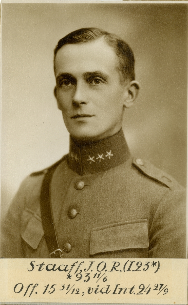 Porträtt av John Olof Ragnar Staaff, officer vid Jämtlands fältjägarregemente I 23 och Intendenturkåren.