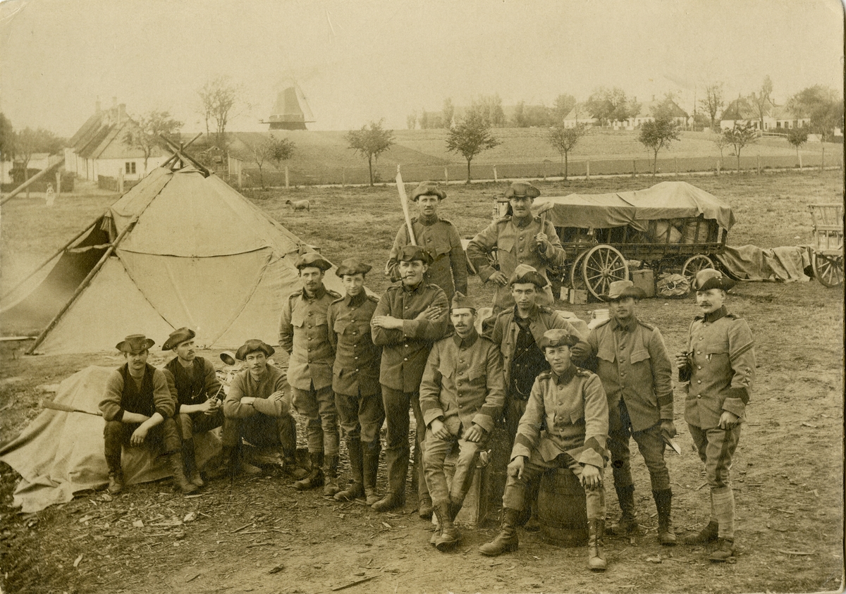 Grupporträtt av soldater vid Positionsartilleriregementet A 9 i Hyllie, Skåne 1914.