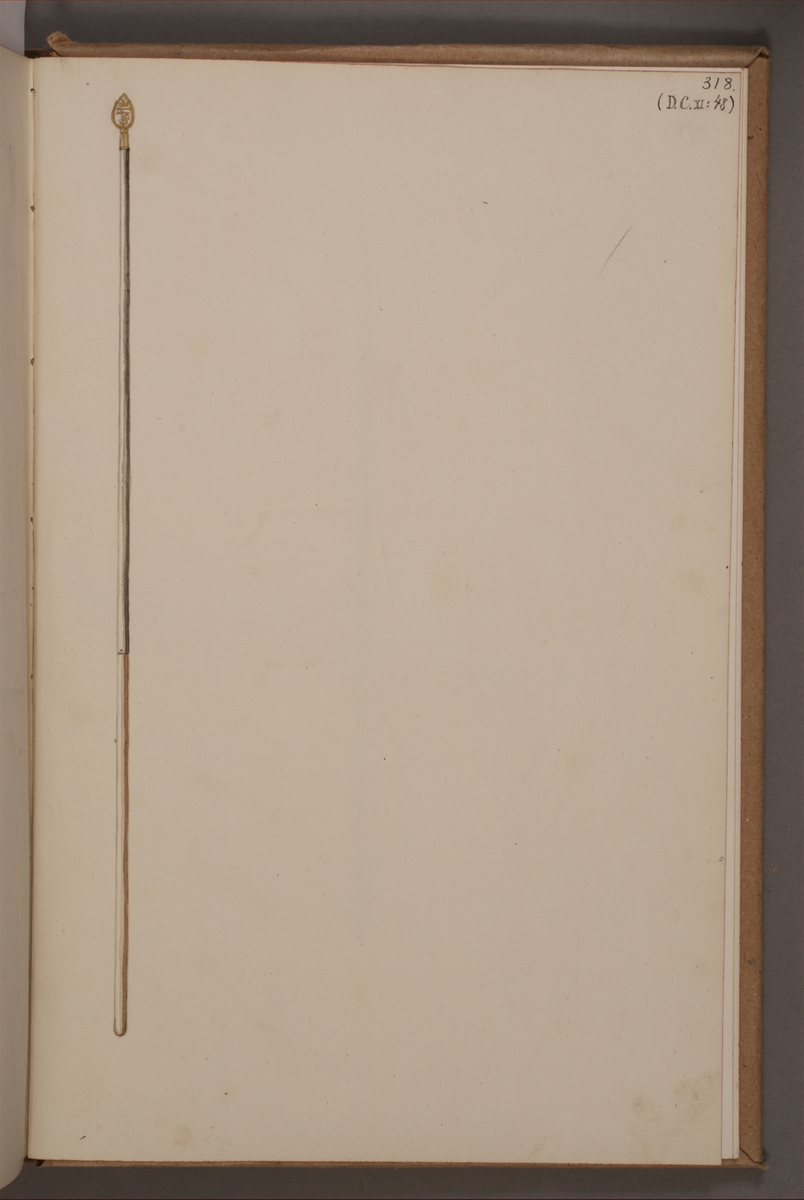 Avbildning i gouache föreställande fanstång tagen som trofé av svenska armén. Den avbildade fanstången finns bevarad i Armémuseums samling, för mer information, se relaterade objekt.