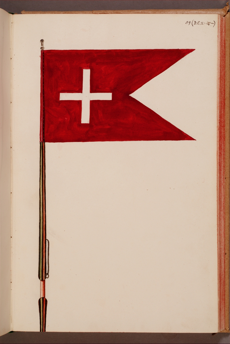 Avbildning i gouache föreställande fälttecken taget som trofé av svenska armén. Den avbildade fanans stång finns bevarad i Armémuseums samling, för mer information, se relaterade objekt.