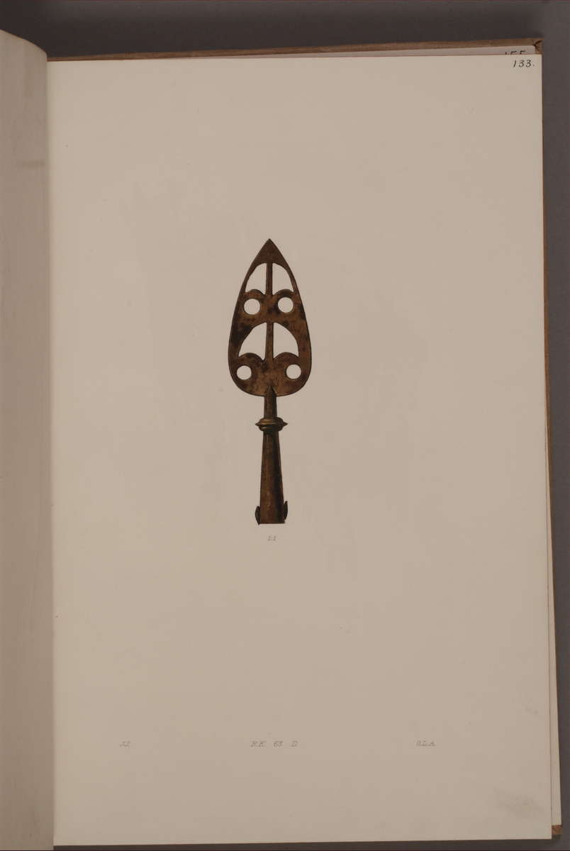 Avbildning i gouache föreställande spets till fälttecken taget som trofé av svenska armén. Den avbildade fanspetsen finns bevarad i Armémuseums samling, för mer information, se relaterade objekt.