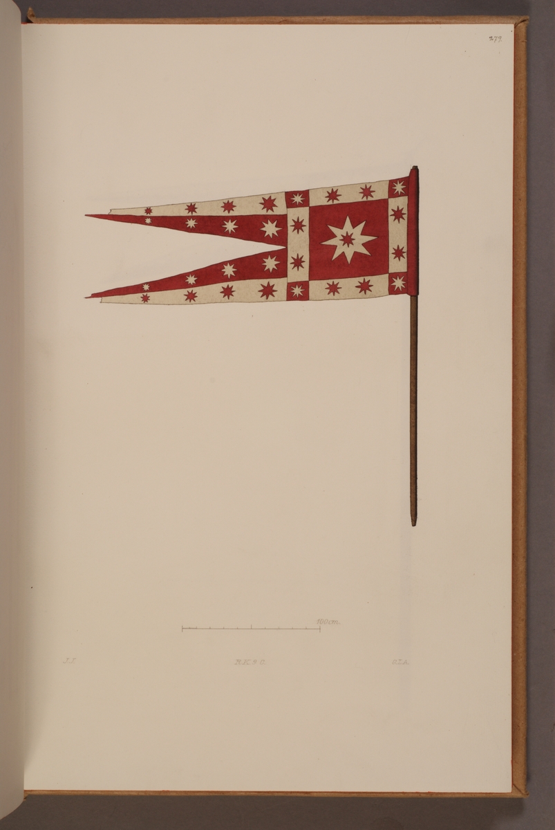 Avbildning i gouache föreställande fälttecken taget som trofé av svenska armén. Den avbildade lansfanan finns bevarad i Armémuseums samling, för mer information, se relaterade objekt.