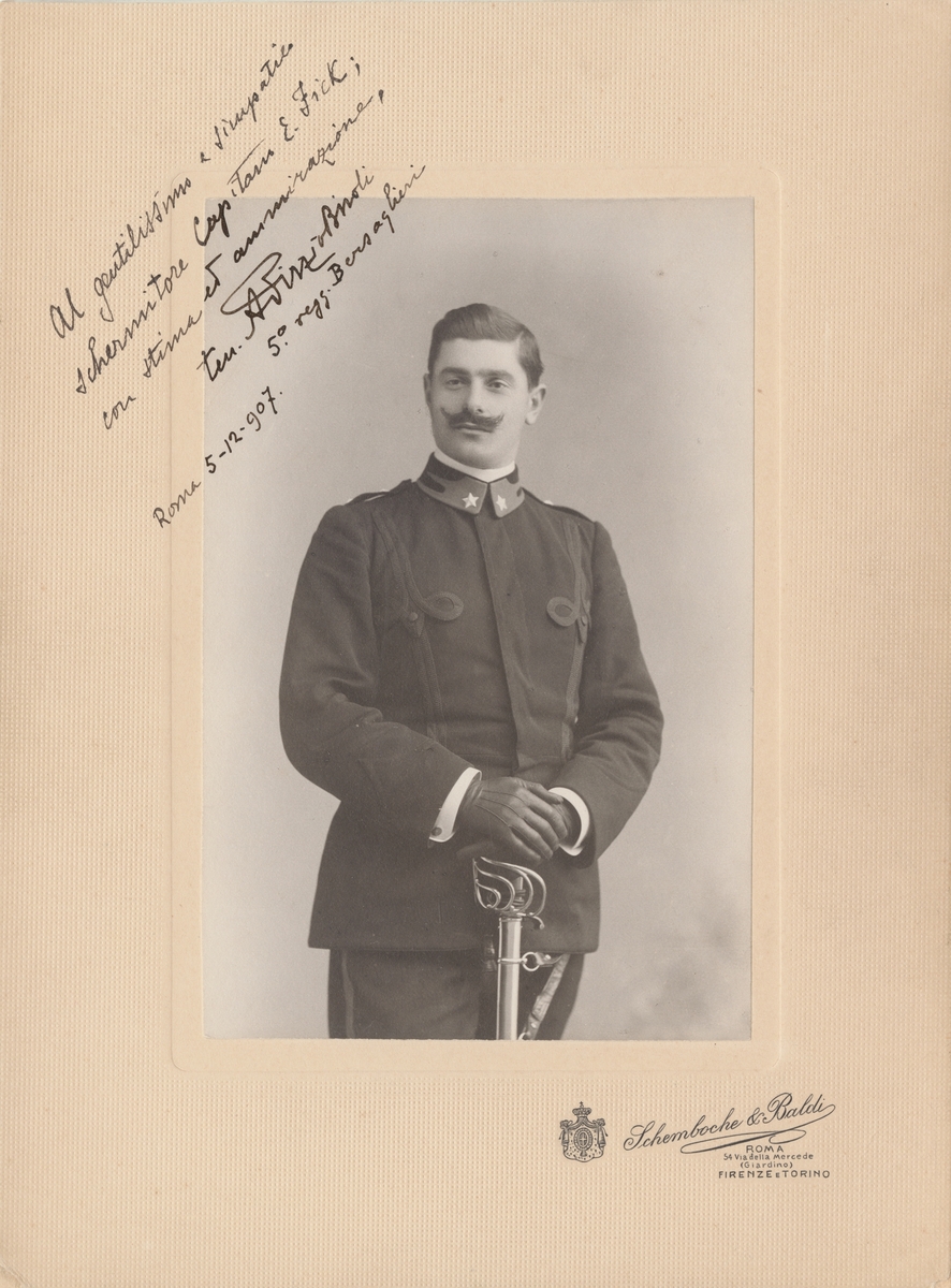 Porträtt av okänd italiensk officerare, med hälsning till kapten Emil Fick.